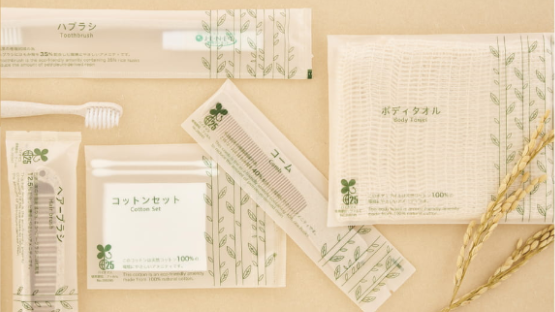 このシリーズには、エコ 歯ブラシをはじめ、ヘアブラシ、コットンセット、ボディタオルなど、宿泊に必要なアイテムが揃っており、環境配慮を具体的に形にすることができます。アメニティ問屋代理店の営業をされている方にとっても、お客様への提案材料として非常に強力なエコ訴求ポイントとなるでしょう。