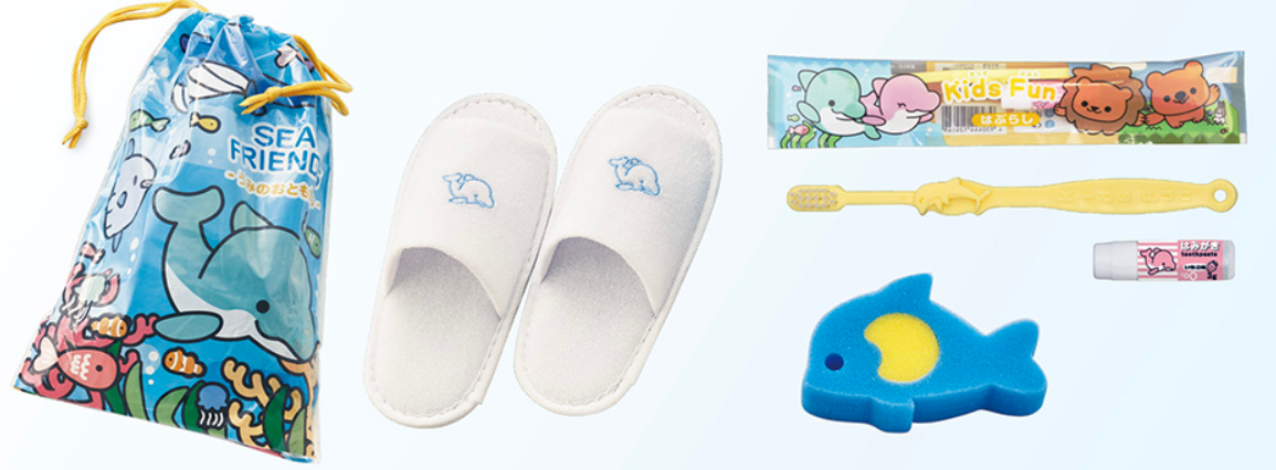 お部屋に入った瞬間、自分専用の可愛いアイテムが用意されていると、子供たちのテンションは一気に上がります。例えば、ダイトが提案する「ドルフィン」のキャラクターが描かれた「シーフレンズ」の子供用セットは、まさに子供たちの心を掴む工夫が詰まっています。中には、小さな足にぴったりのスリッパや、可愛らしいイラスト入りのタオル、そして子供用 歯ブラシがひとまとめになっていて、持ち帰りたくなるようなビニールバッグに入っているのが魅力です。こうした専用のセットがあるだけで、慣れない場所での宿泊も、子供たちにとってはワクワクする冒険のような体験に変わります。