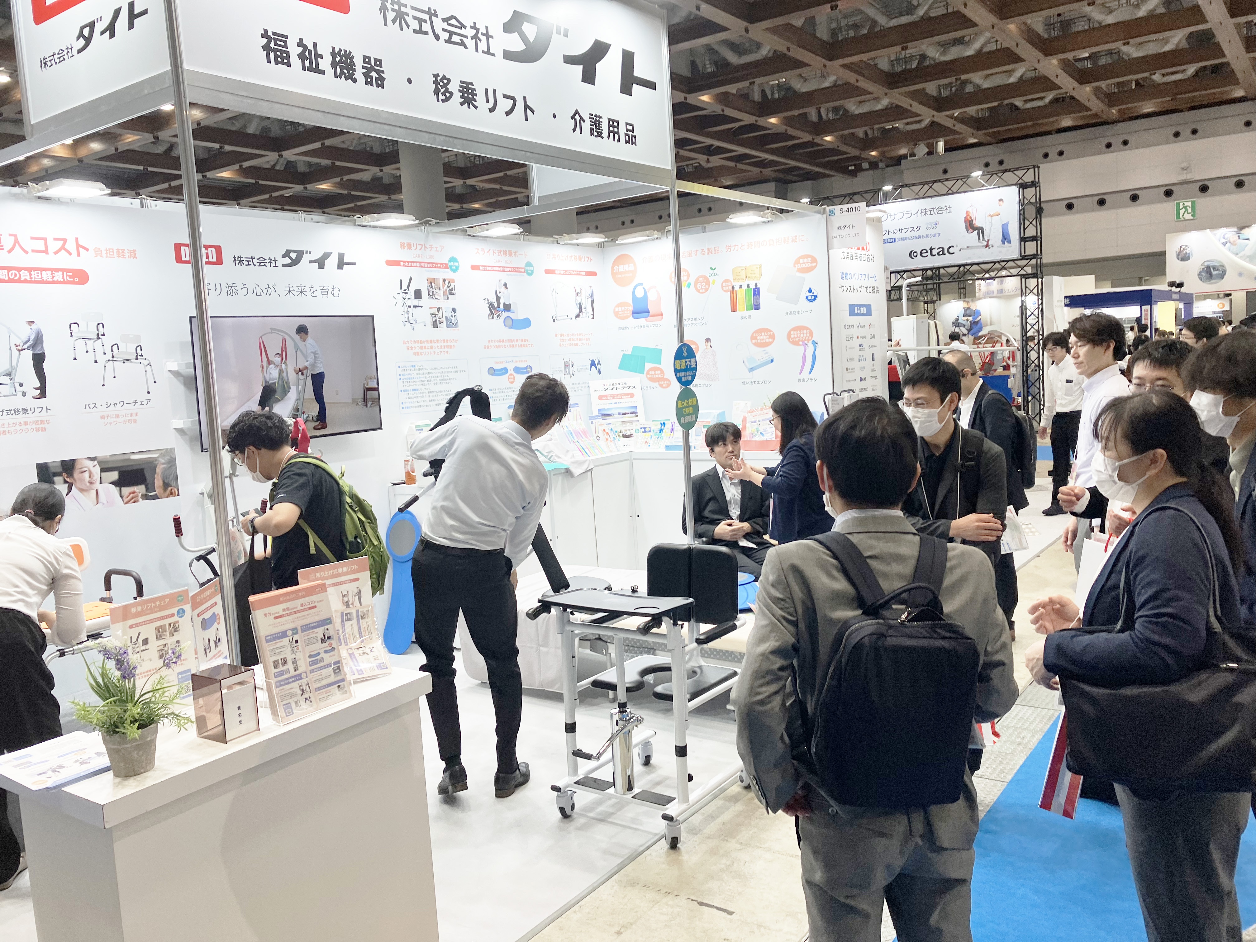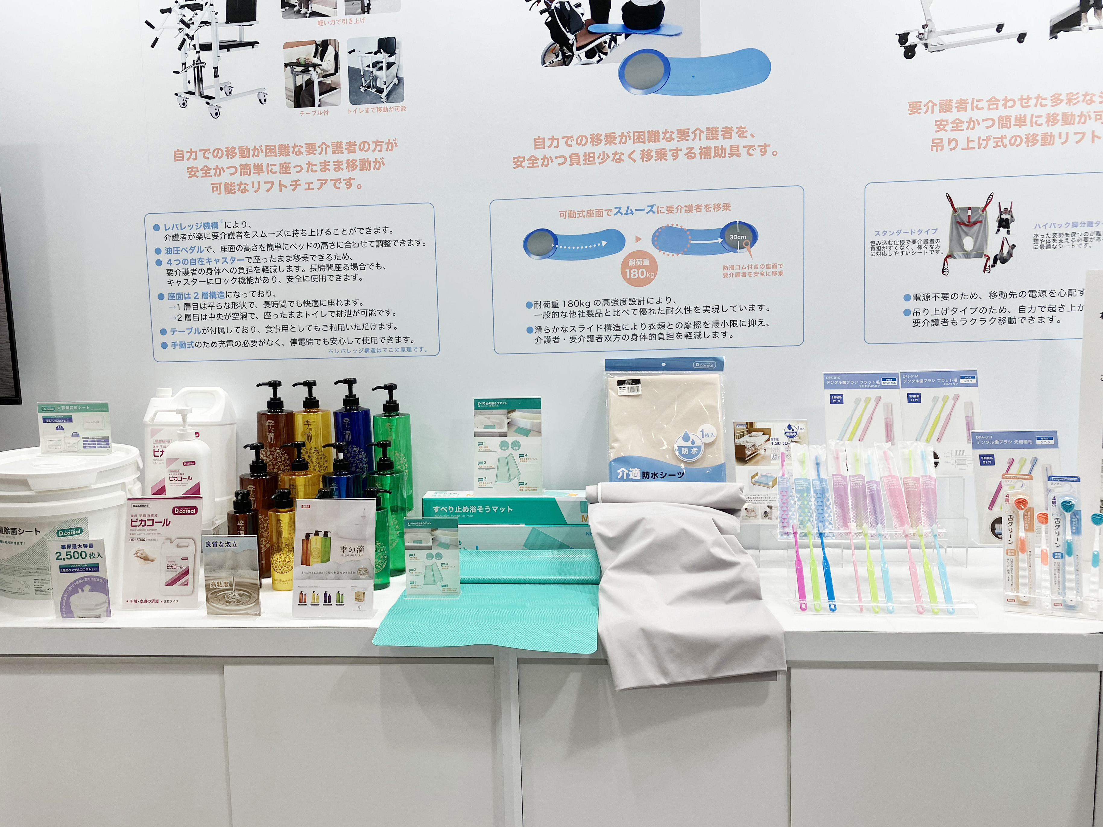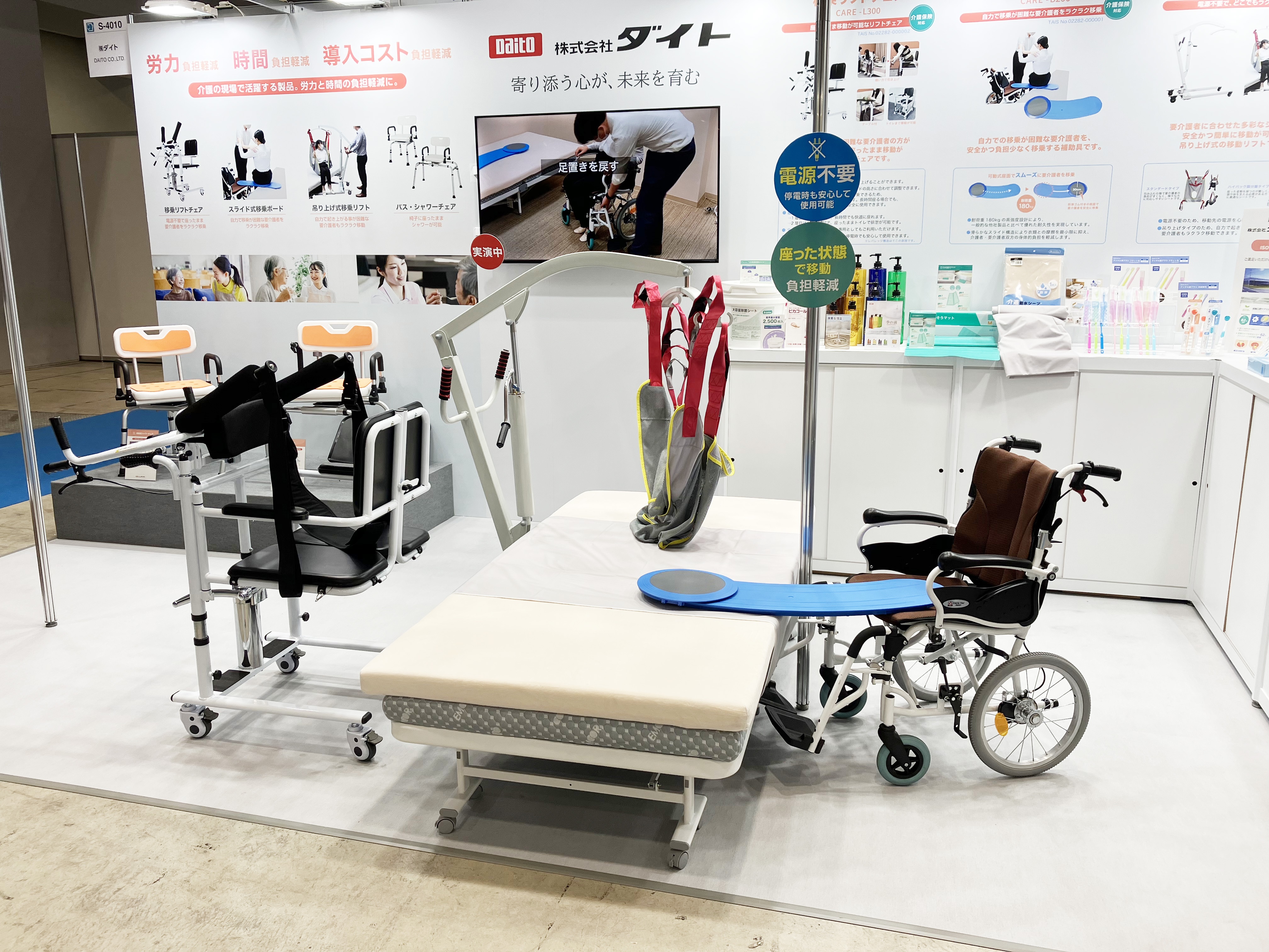 「福祉機器」「移乗リフト」をメインに多数介護用品を展示いたしました。